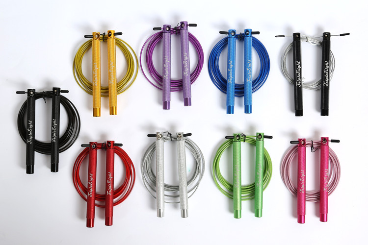 طناب سرعتی تریپل ایت با طراحی سبک و کابل روکشدار فلزی، برای تمرینهای سرعتی و حرکات Double Unders و Triple Unders ساخته شده.