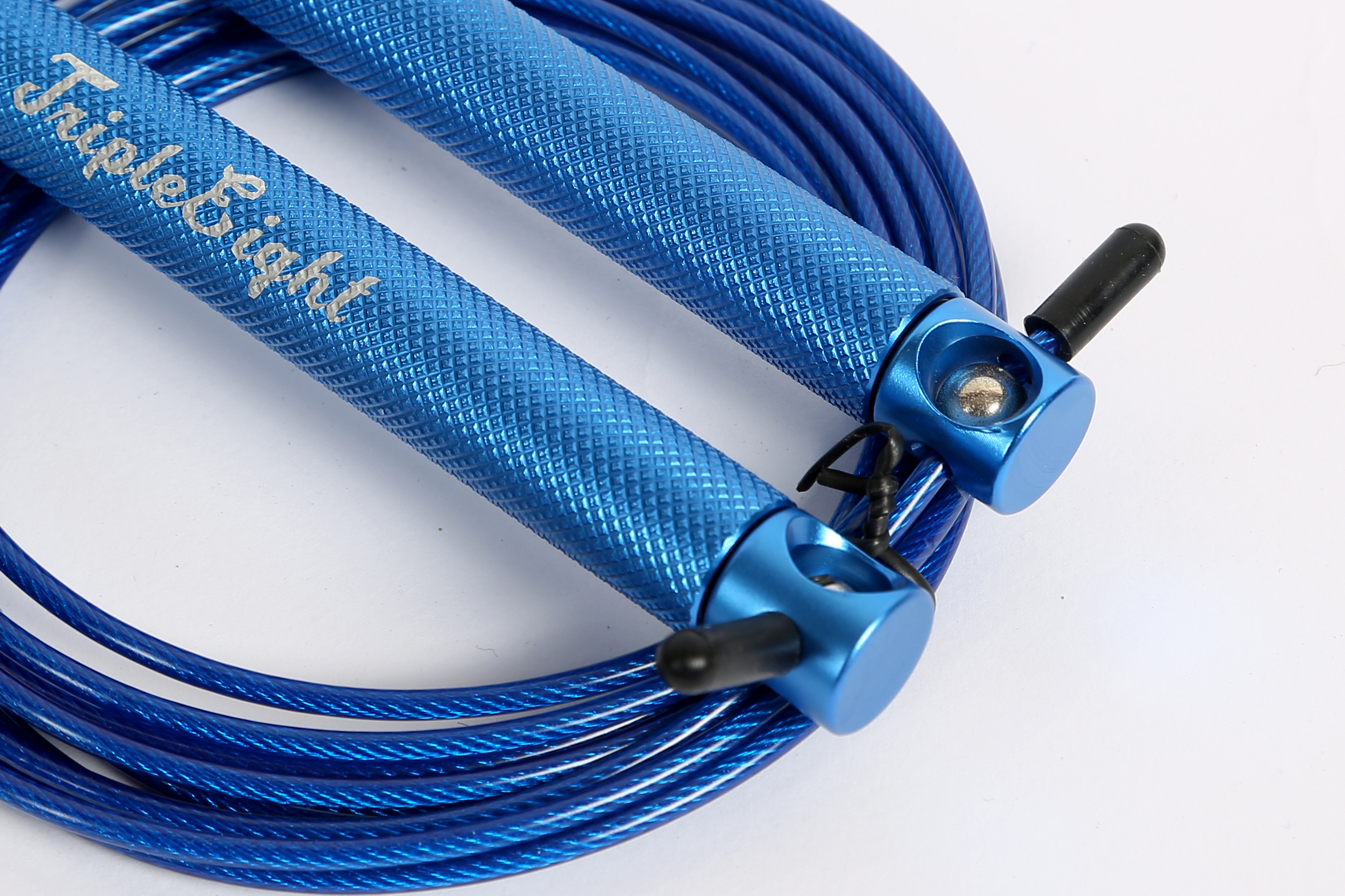 طناب سرعتی تریپل ایت با طراحی سبک و کابل روکشدار فلزی، برای تمرینهای سرعتی و حرکات Double Unders و Triple Unders ساخته شده.